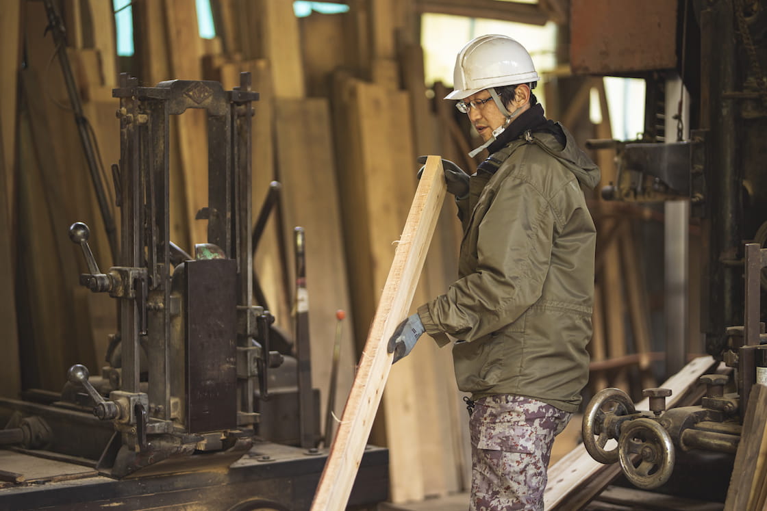 自社の製材所で、建材、内装材、フローリング材をはじめ、さまざまなかたち・大きさの木材の製材・加工・販売を行っています。森と踊るの森から伐採した杉や檜の製材・加工のご依頼はもちろん、お客様の持ち込み材の製材・加工にも対応いたします。設計事務所や工務店をはじめ、一般のお客様のご依頼も承ります。